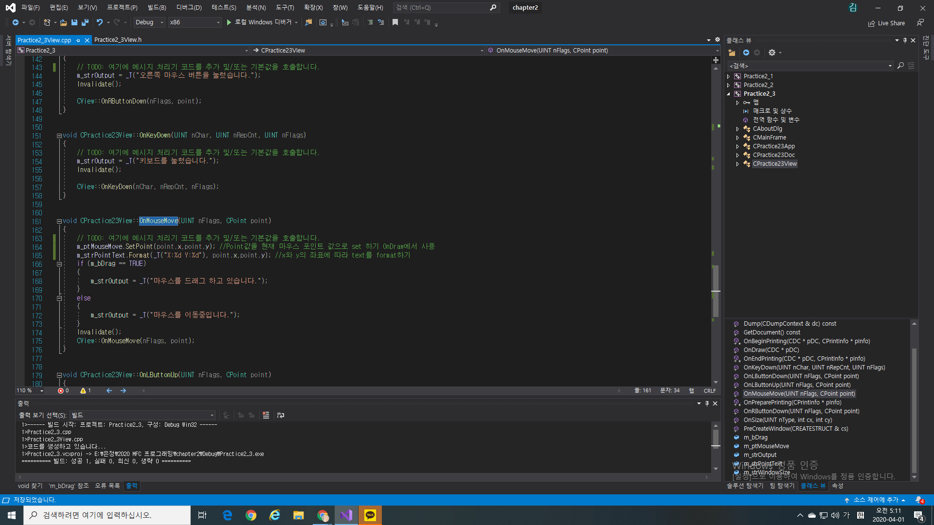 Visual C++2015 MFC 프로그래밍 3장 연습문제 (0) 2020.04.09 Visual c++ 2015 MFC 프로그래밍 1장 연습문제 (0) 2020.03.27