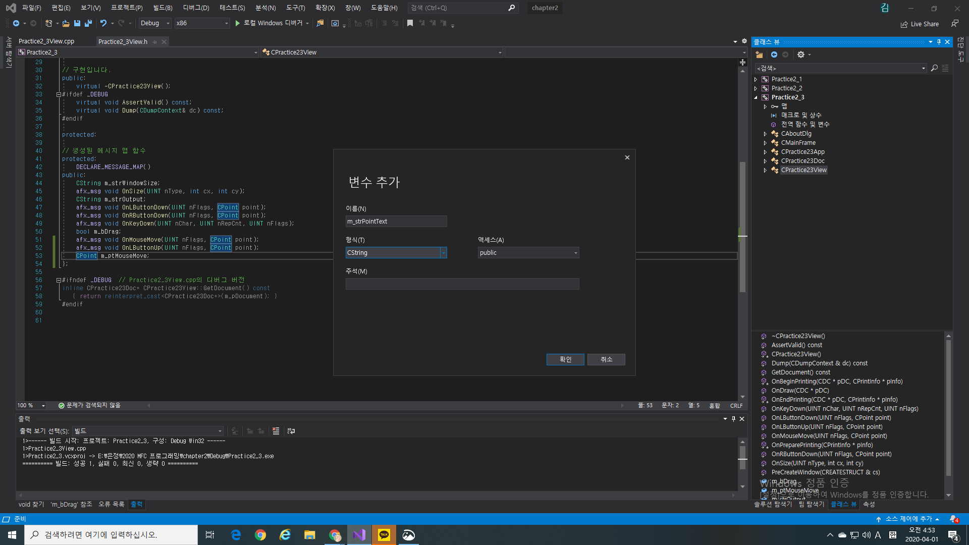 2) m_strPointText 라는 변수를 추가한다. 자료형은 CString형.