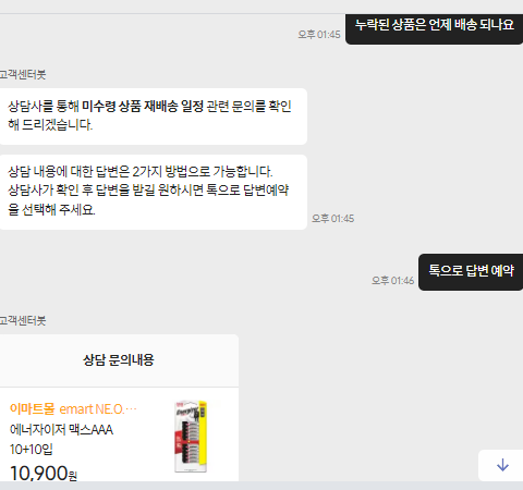 일단, 첫 상담사는 나에게 재배송을 안내했다.(이때도 믿지 말았어야 했는데...)