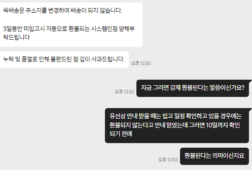 분명히 유선상 안내 받을 때 입고 일정 확인하고 있을 때에는 환불되지 않는다고 안내를 받았었다.