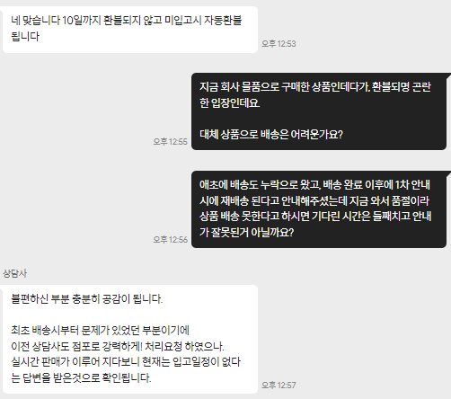 차라리 10월 2일 상품이 재배송 안된다고 말이라도 했다면 중간 결재가 오래 걸리지도 않았을거다.